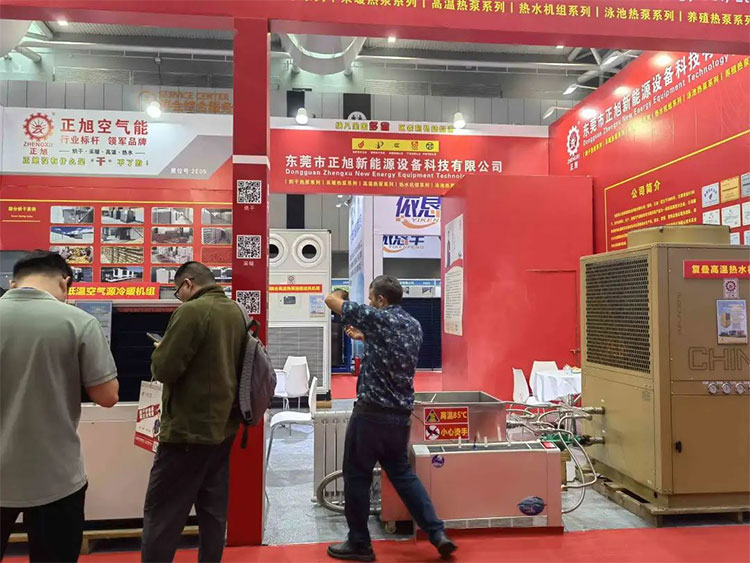 正旭通過開放式的展位形式,把富有吸引力的復疊高溫熱水機組,巧妙生動的展示在參觀者的眼前,全方位呈現了正旭熱泵產品的性能以及工藝,現場參觀客商云集,比肩繼踵,人氣爆棚!